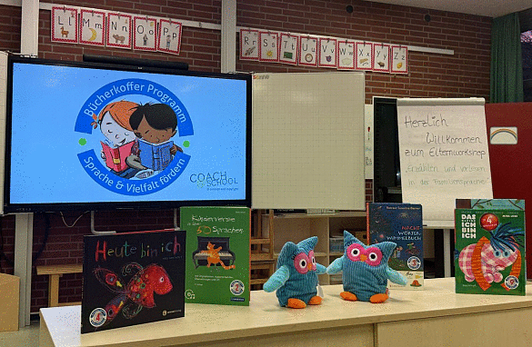Seit dem 27.10.2025 rollt der mehrsprachige Bücherkoffer in die Familien unserer Schüler*innen der 2 Klassen. Ob Deutsch, Polnisch, Farsi, Arabisch, Türkisch oder Ukrainisch – mit seinen bunten Kinderbüchern in bis zu 50 verschiedenen Sprachen spiegelt der Bücherkoffer die Vielfalt in unserer Gesellschaft wider und fördert das (Vor-)Lesen in der Familiensprache. Jedes Kind lernt, dass seine Sprache und Kultur ein Schatz sind. Der Bücherkoffer leistet damit einen Beitrag zur sprachlichen Bildung für alle Kinder und stärkt sie in ihrer Persönlichkeitsentwicklung.