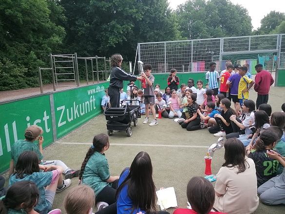 Am Montag, den 2. Juni, verwandelte sich der Bolzplatz der Grundschule Robinsbalje in ein kleines Fußballstadion. Unter der engagierten Leitung von Frau Kläne aus der Schulsozialarbeit fand das große Fußballturnier der vierten Klassen statt.