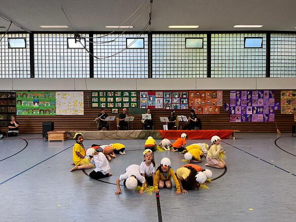 Am Freitag folgte dann die Aufführung. Zwar ohne Eltern als Publikum, aber mit der gesamten Schulgemeinschaft als Zuschauer:innen. Die Begeisterung war riesig, und die Aufführung wurde für alle Beteiligten zu einem Höhepunkt des Schuljahres.