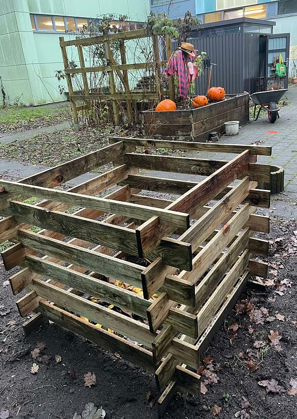 Ein besonderes Highlight dieses Jahres war die erfolgreiche Errichtung unseres brandneuen Kompostbehälters. Dank des gemeinsamen Engagements und der tatkräftigen Unterstützung konnte dieses Projekt erfolgreich abgeschlossen werden. Der neue Kompostbehälter wird zu einer nachhaltigen Abfallbewirtschaftung mit den Abfällen aus unserem schuleigenen geliefertem Bioobst und Biogemüse sowie den Abfällen aus unserem Schulgarten beitragen. Zudem ist der neue Kompost ein anschauliches Beispiel für Teamarbeit und der Entwicklung eines Umweltbewusstseins für unsere Schülerinnen und Schüler.