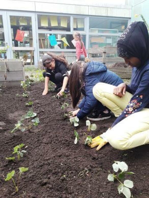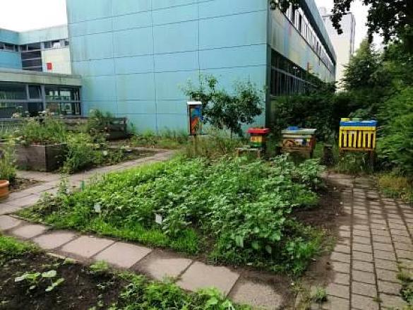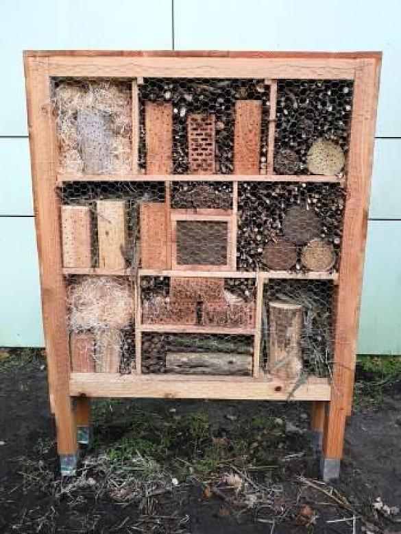 Im Herbst 2019 hat unsere Schulgarten-AG in Kooperation mit "Arbeit& Ökologie Bremen" ein Insektenhotel gebaut und mit selbstgemachten Samenbomben ein neues Beet angelegt. Nach dem es durch einen Brand völlig zerstört war, haben wir - dank der Sparkasse Bremen - seit März 2021, wieder ein neues Insektenhotel.