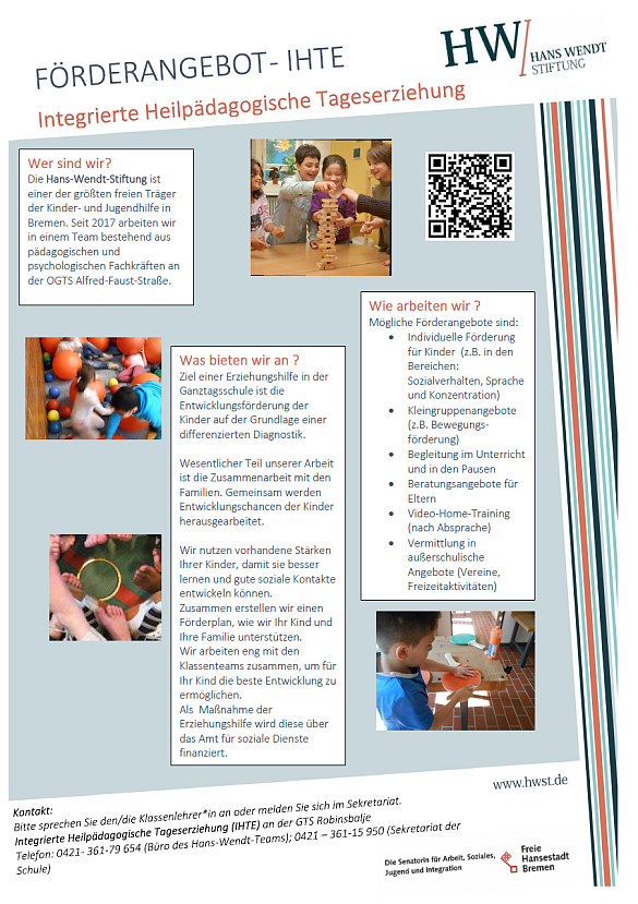 Integrierte Heilpädagogische Tageserziehung ist eine Hilfe zur Erziehung für Kinder, die eine Ganztagsschule oder einen Hort besuchen.